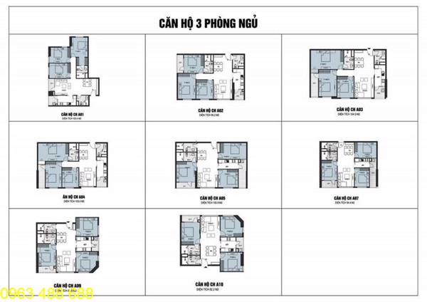 - Loại hình căn hộ: 2 – 4 phòng ngủ từ 70m2 – 127m2.
