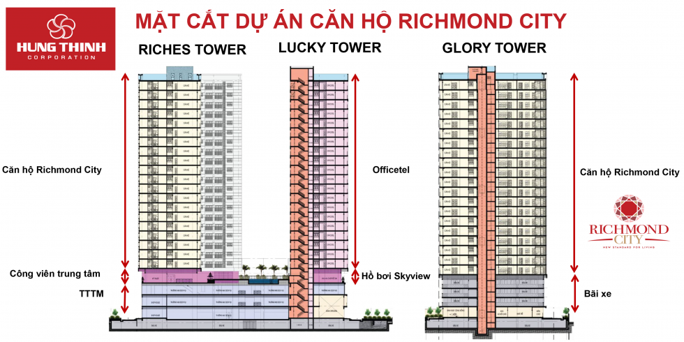 Trung tâm thương mại - căn trệt thương mại - nhà hàng - coffeeshop - officetel tạo nên sự môi trường làm việc và giao thương nhộn nhịp, phục vụ cho chính cư dân Richmond City và dân cư khu vực, đảm bảo mang lại thành công và thịnh vượng cho người sở hữu.