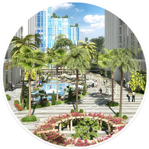 Hệ thống hồ bơi ngoài trời tươi mát, hiện đại và cây xanh ở các cụm căn hộ đem lại không khí trong lành cho bạn.