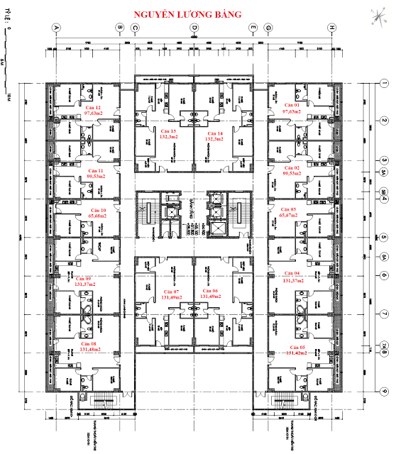 - Căn số 13 (D5) diện tích 132,3m2 gồm 3 phòng ngủ, cửa Đông Nam, ban công Tây Bắc