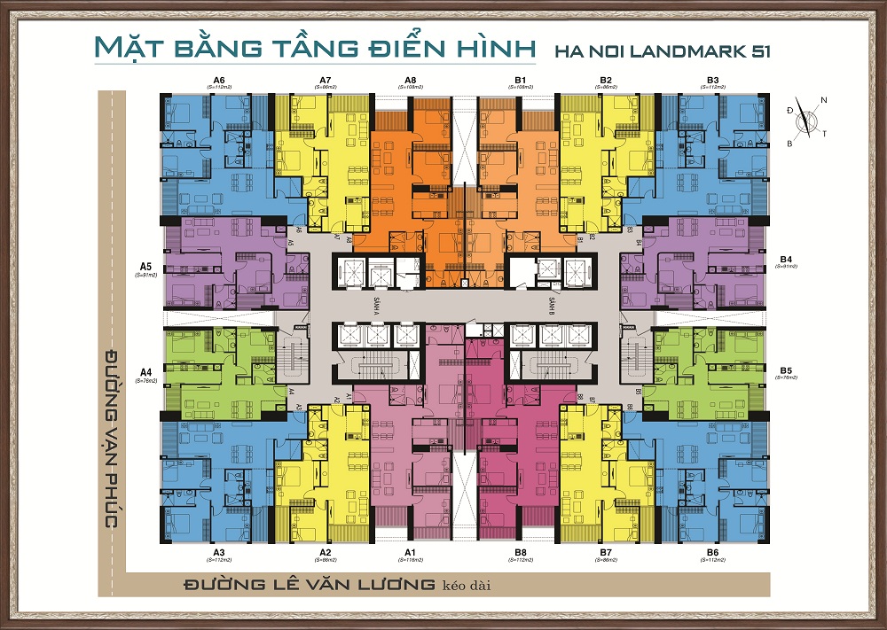 Tại mỗi tầng sẽ có 6 căn thuộc loại 3 phòng ngủ với các loại diện tích 91m2, 108m2, 112m2, 116m2, 122 m2, 133m2.