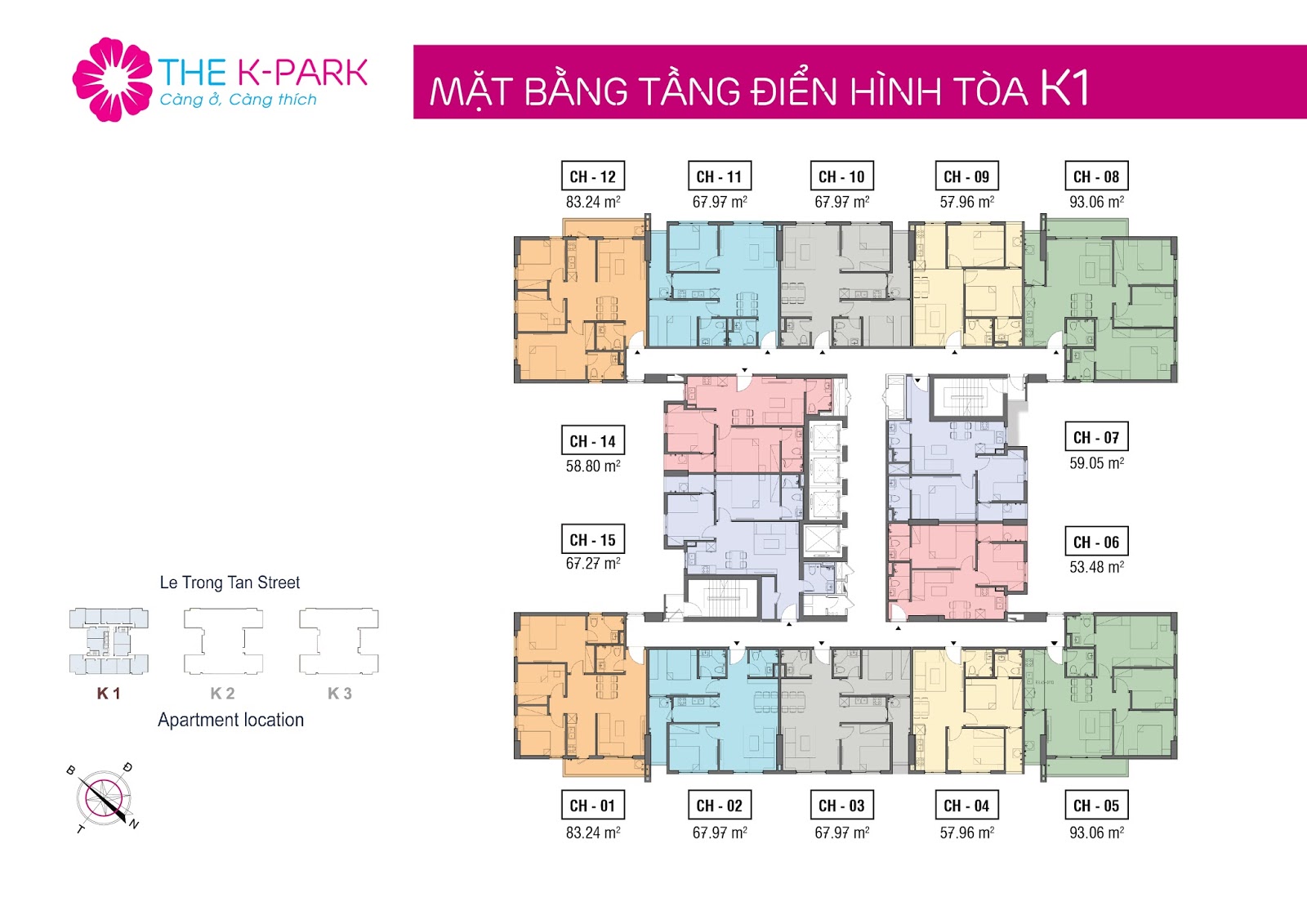 + Quy mô: bao gồm 3 toà tháp Tháp K1: 27 Tầng, Tháp K2: 25 Tầng và tháp K3: 23 tầng có chung khối đế cao 2 tầng, 1 tầng hầm.