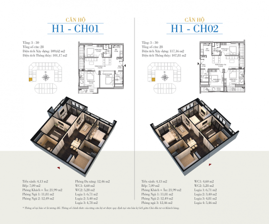 + Diện tích 51m2 – 153m2. (Từ 1-3PN).
