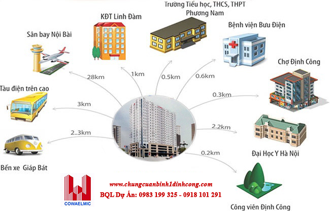 Tọa lạc ngay vị trí trung tâm khu đô thị mới Định Công. Trong vòng bán kính 3km từ dự án, cư dân có thể dễ dàng di chuyển đến: