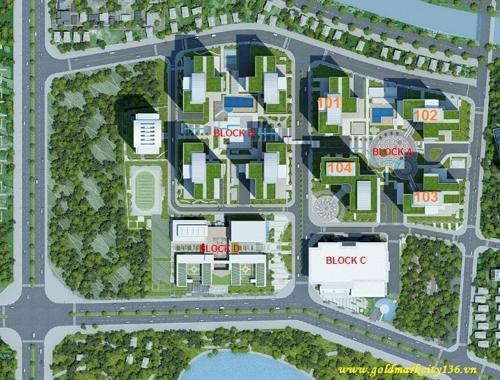 Gồm 4 phân khu gắn với các block A, B, C, D