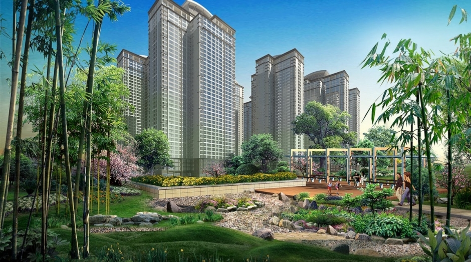 Có tổng diện tích 13,769 m2 được bố trí tại lõi trung tâm giữa các khu vực nhà ở, gồm nhiều dãy cây xanh, vườn hoa, khu tổ chức sân chơi, hoạt động thể thao, lối dạo bộ kết hợp với không gian mặt nước trải dài xuyên suốt trong khu vực không chỉ đem lại phong cảnh đẹp, hài hòa với tính thẩm mỹ sinh thái cao mà còn mang lại một môi trường trong lành, mát mẻ cho toàn bộ khu dự án chung cư