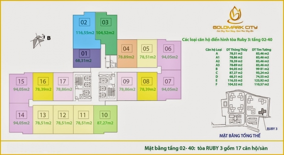 Mặt bằng chi tiết toà RUBY 1; 2