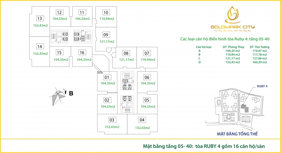 Diện Tích: 68 -78 - 86 - 104 -121 -152m