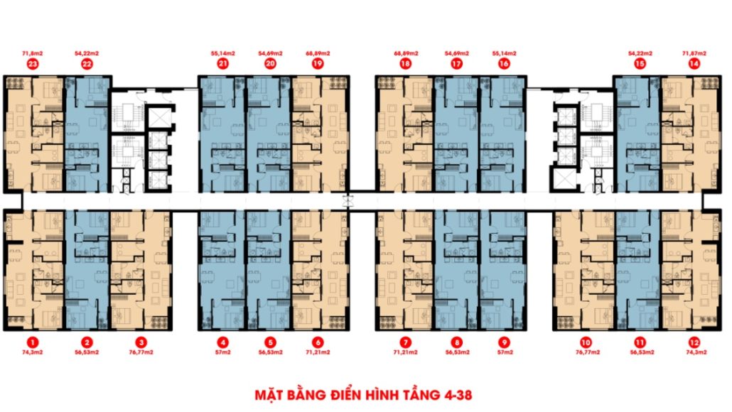 Căn hộ có diện tích từ 55-77m2 từ 2-3 PN đều được thiết kế đáp ứng với mọi nhu cầu, mong muốn và ngân sách của bạn và có tới 8 tháng máy tốc độ cao để đáp ứng đầy đủ nhu cầu di chuyển nhanh chóng của cư dân trong toàn nhà.