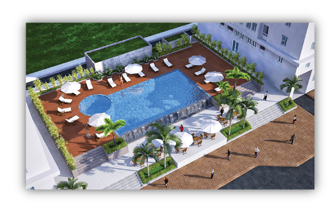 - Có hồ bơi tràn trong khuôn viên căn hộ, nhà trẻ, khu vui chơi cho trẻ em, gym, spa, tầng thương mại ...