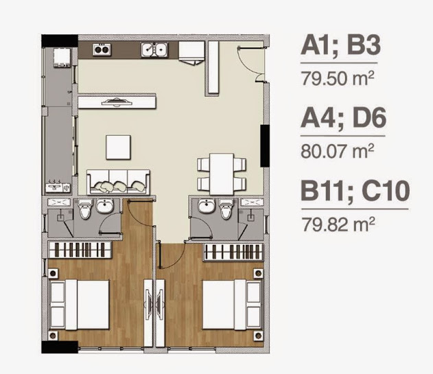 - Với diện tích đa dạng và phong phú dễ lựa chọn: 57m2 - 70m2 - 76m2 - 78m2 - 80m2 - 103m2 ( 2 PN - 3 PN).