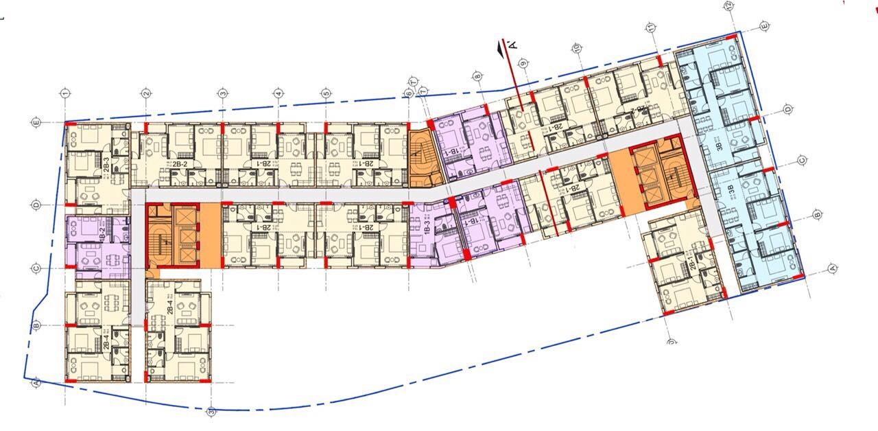 + Loại B2: Diện tích tim tường: 70,67m2 ( Diện tích thông thủy: 66,93m2 )