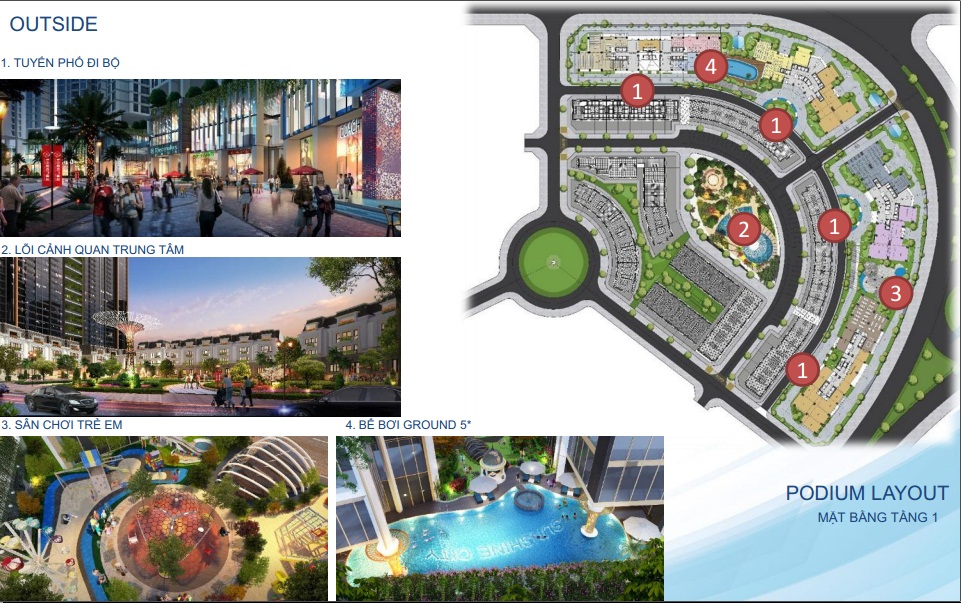 Khu Trung tâm thương mại: tiện ích mua sắm, chuỗi nhà hàng Âu- Á, rạp chiếu phim….