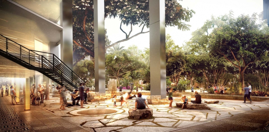 Từ công viên trung tâm ngay trên mặt đường Nguyễn Tuân, những con đường đi bộ là biểu tượng của những gân và nhánh của lá, phân nhánh kết nối tới bốn tòa nhà. Một khu giải trí nghỉ ngơi được sắp đặt để là trái tim trung tâm của một khu công viên đô thị, nơi các hoạt động được tập trung, tương tác và các hoạt động đa dạng có thể thực hiện.