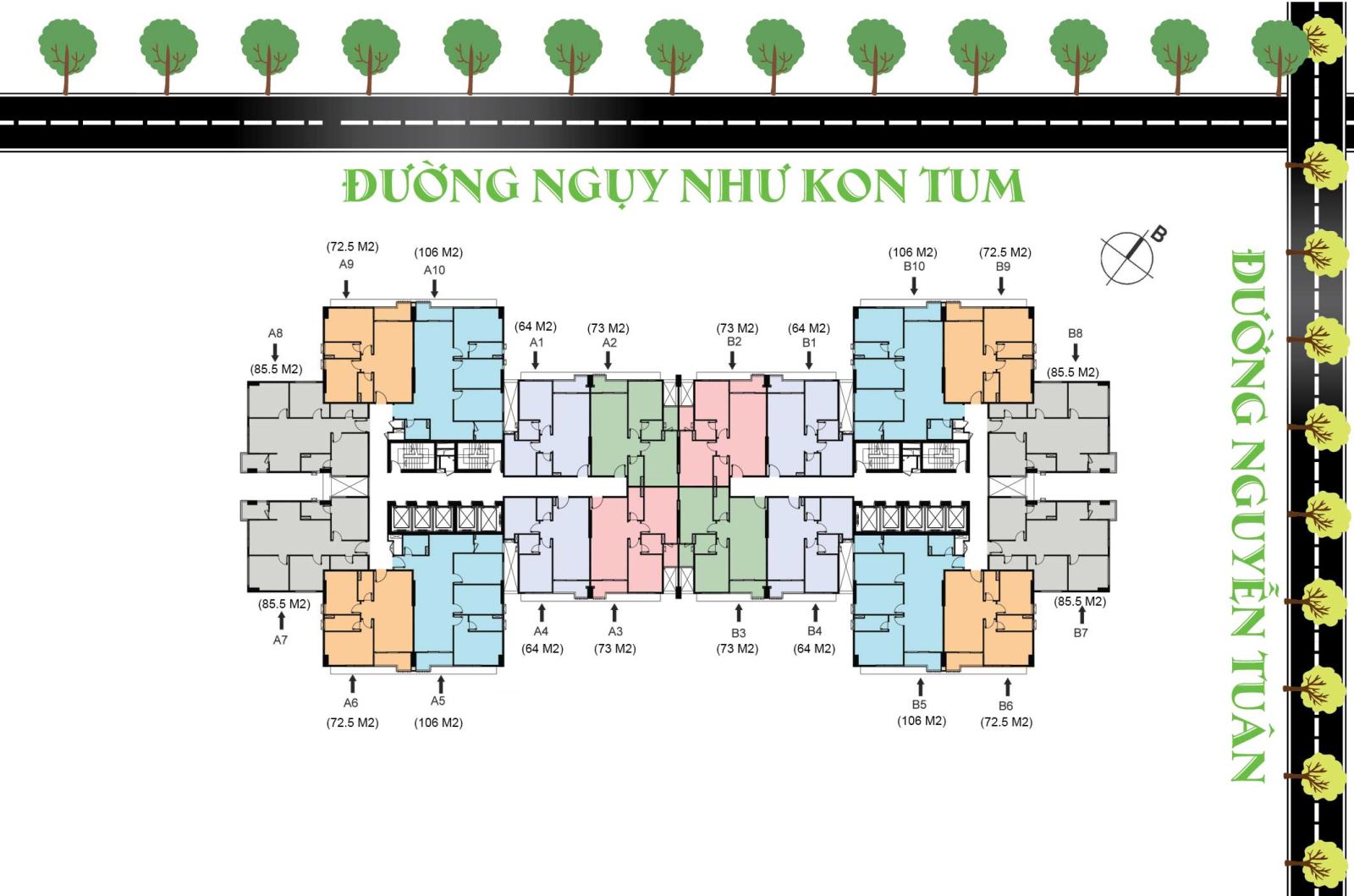 Diện tích căn hộ: 64m2 - 73m2 - 85m2 - 106m2 - 186m2