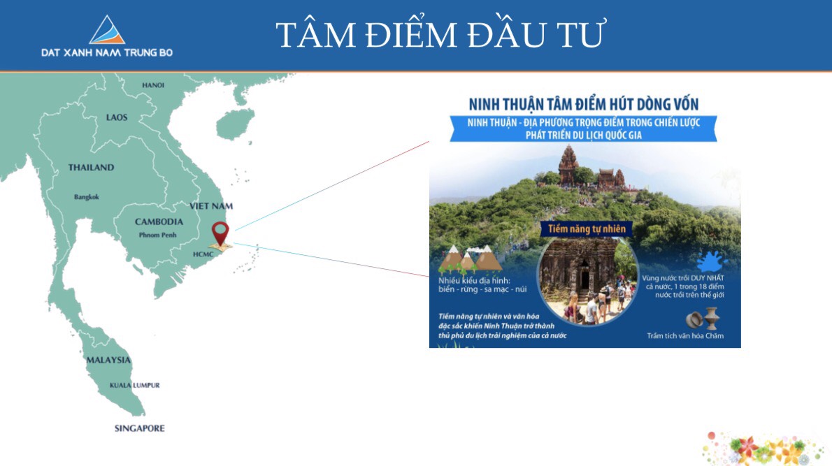 – Cam kết giá tốt nhất tại thị trường mới, đang trên đà phát triển mạnh của Ninh Thuận với sự góp mặt của các Tập Đoàn lớn như Vingroup, Hoàn Cầu, Crystal Bay, Apec,… về dự án các khu nghỉ dưỡng cao cấp…