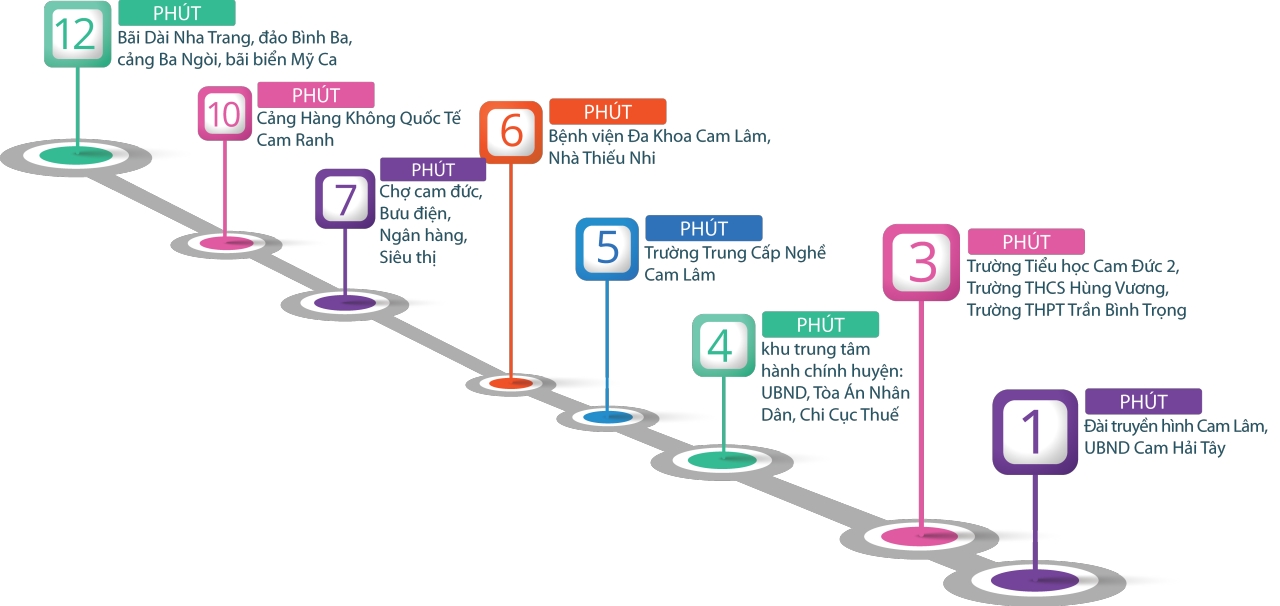 2. VỊ TRÍ CHIẾN LƯỢC – TÂM ĐIỂM GIAO THƯƠNG – Ngay ngã tư QL1A và trục đường chính Đinh Tiên Hoàng, tuyến đường huyết mạch của Cam Lâm nối với Đại lộ Nguyễn Tất Thành nối thẳng đến KDL Bãi Dài.