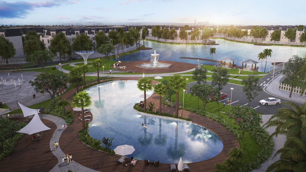 Bể bơi ngoài trời được thiết kế tại trung tâm khu đô thị